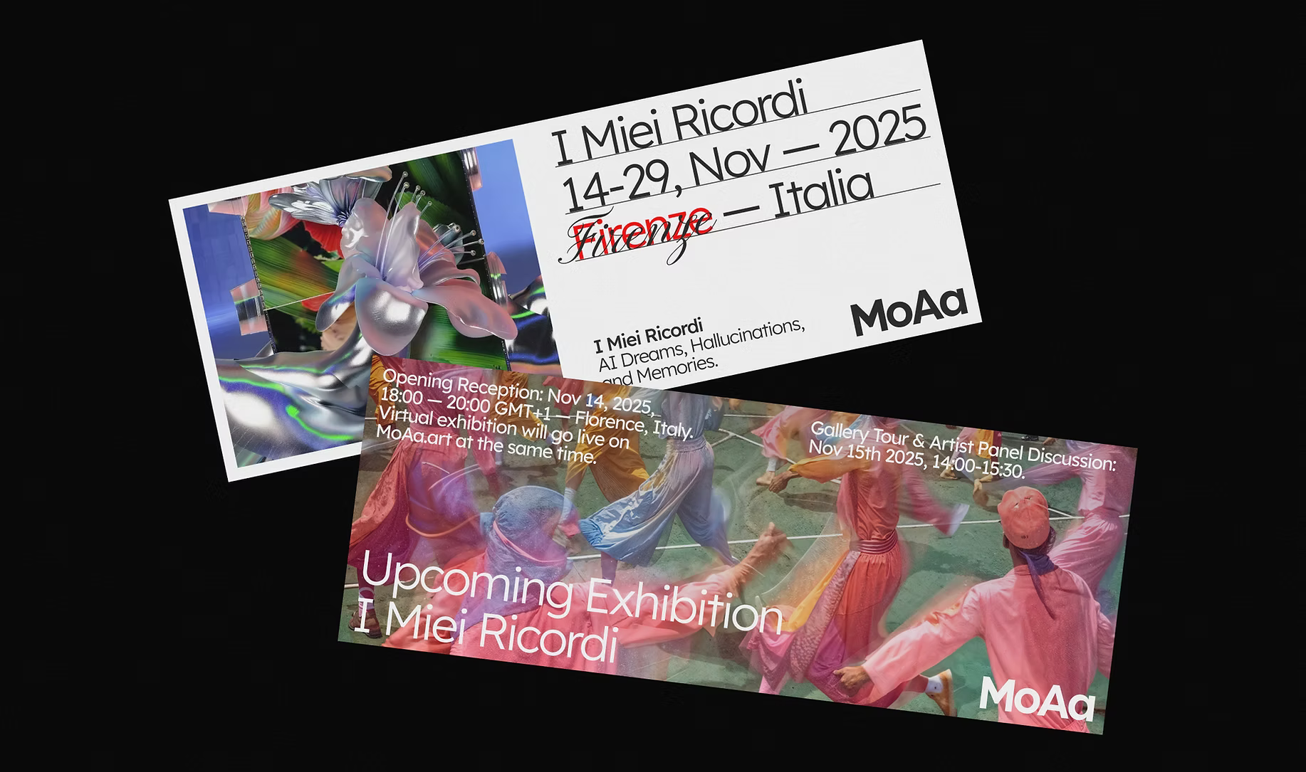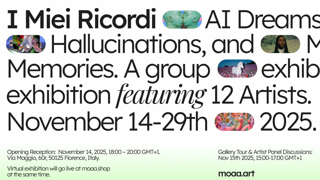 I Miei Ricordi opens November 14th, 2025 — online (moaa.shop) and in-person in Florence, Italy.Opening reception: Nov 14th 18:00 - 20:00 Gallery Tour and Artist Panel Discussions: Nov 15th 14:00-15:30